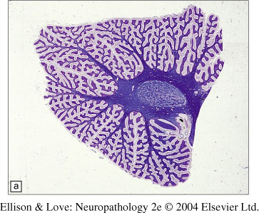 - macroscopically, can only be detected by careful observation in mature brains (hard to see in immature brains