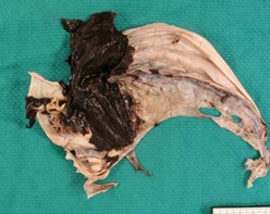 - surrounding necrotic tissue if hematoma large enough to cause secondary infarction